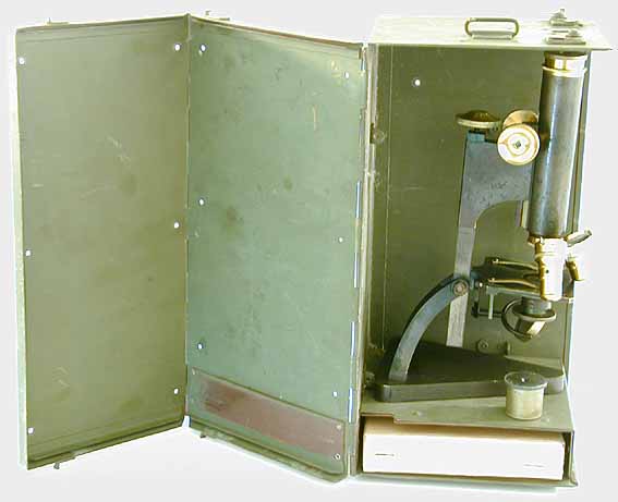 military example of the R.&J.BECK STAR microscope in a military case. The star mark,