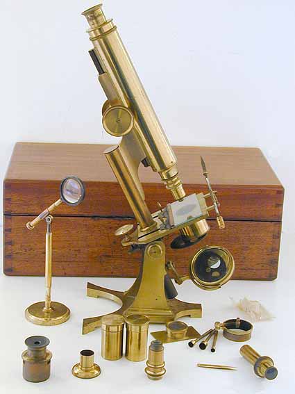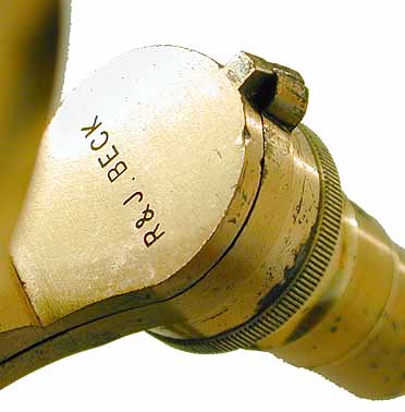 Ltd., LONDON This all brass microscope is by R & J Beck and is