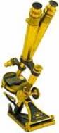 lacquered brass cans. It has one eyepiece and it has a triple nosepiece. The
