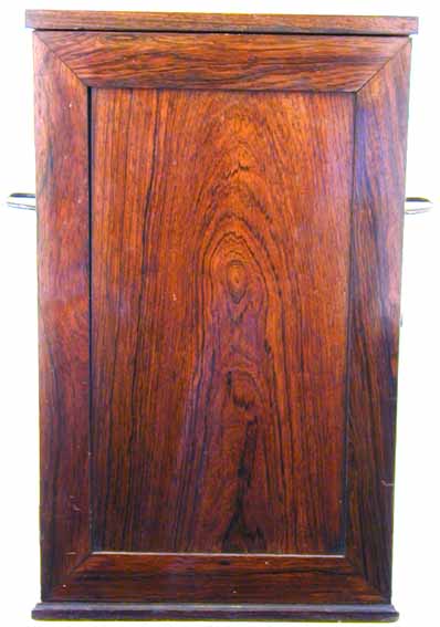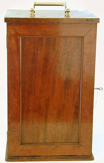 mounted on the inside of the door. The case has brass handle, hinges, lock and
