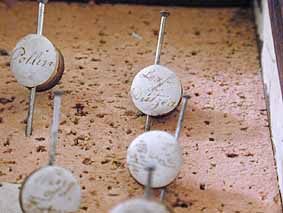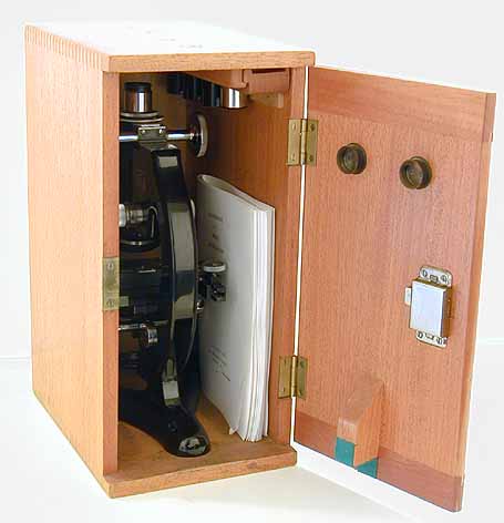 6 internal drawers is cork lined to hold microscopic samples on pins. The base of the microscope has a