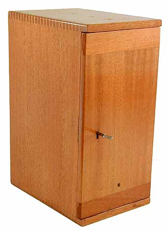 the inside of the door. The case has brass handle, hinges, lock and is about 13inches high