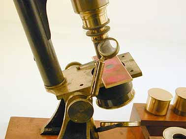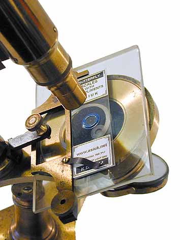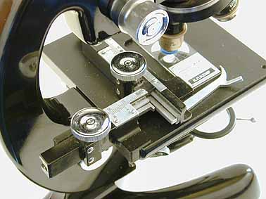 over-stage with verniers, and sprung clip for secure holding of the slide. The