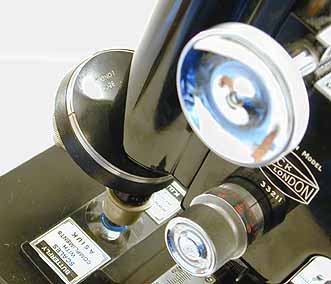 over the stage for oblique illumination. The instrument uses the standard Beck