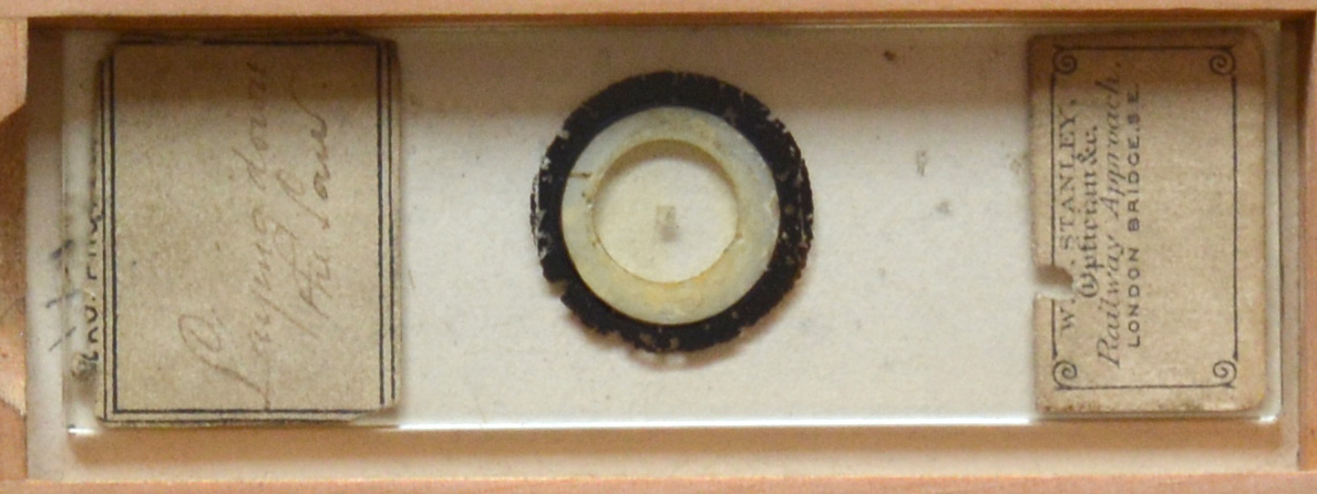 ringed cover slip – unusual. Maybe an after market addition (?)