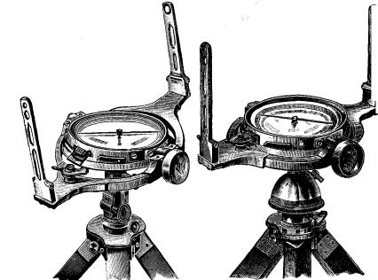 No. 13‑Davis's Hedley Dial, with outside Vernier on chamfered surface automatically checking the needle; improved arc; improved clamps always occupying the same relative positions. Complete in Compact mahogany case. One set of improved form of telescopic legs.