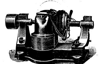 The most marked deviation from the ordinary commutator is, that instead of the brush contact being on the outside of the cylinder formed by the commutator segments, this cylinder is bellow, and the brushes bear on the inside face of the segments. The method of construction is as follows:-