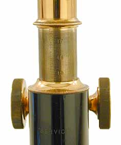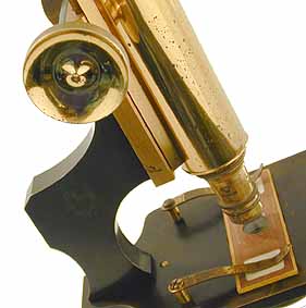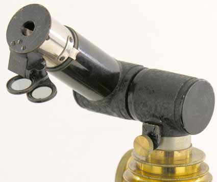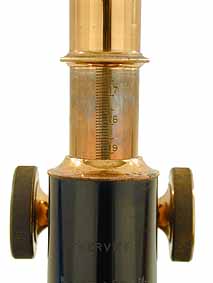 The tube length is set by a double extending, thumbwheel Van Heurck