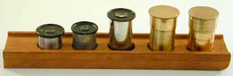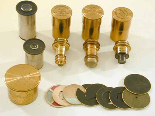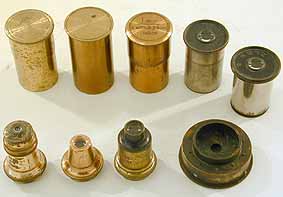 and 4 inch) in lacquered brass cans, 4 "top hat" type
