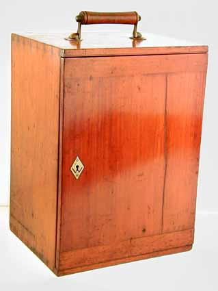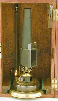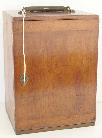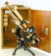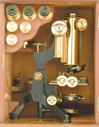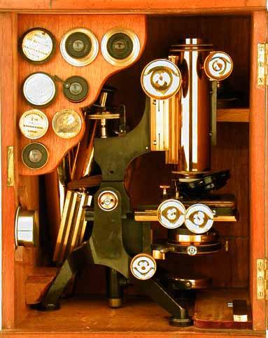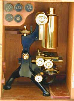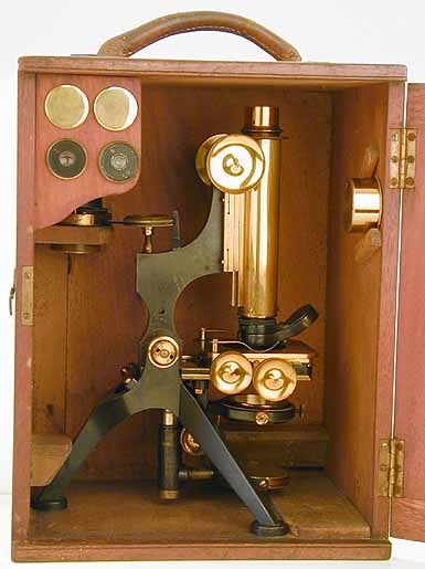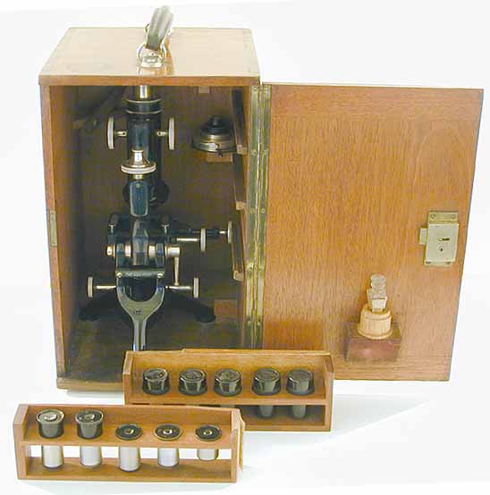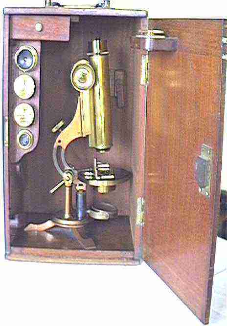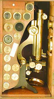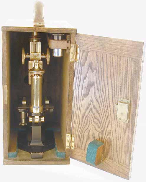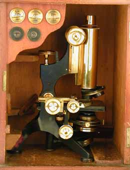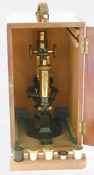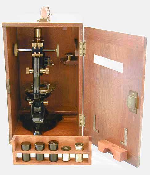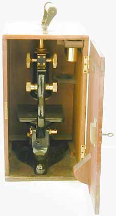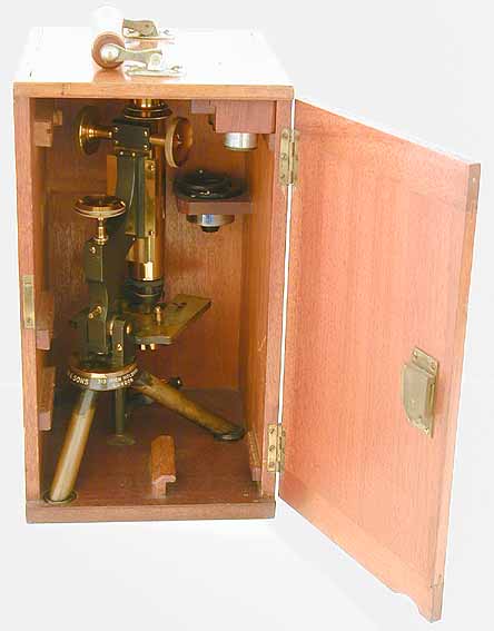 in the case. The microscope is housed in a mahogany case