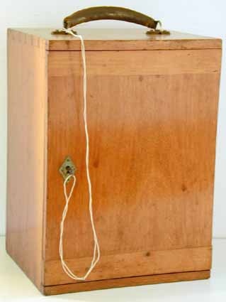 and a drawer containing some slides. The case has a brass handle,