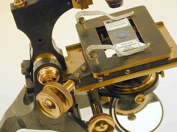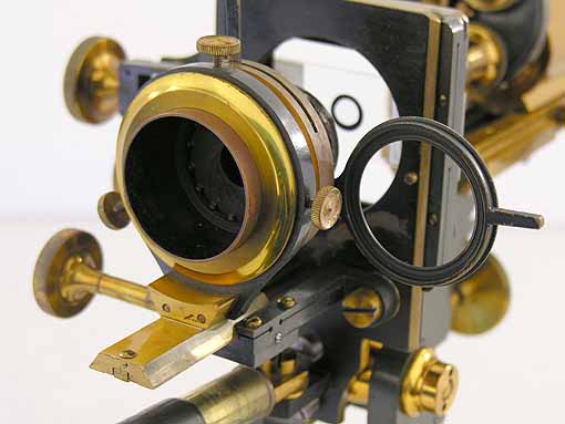 Beneath the stage is an “Abbe” type condenser