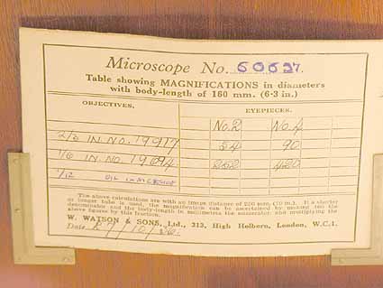 This selection details some of the Watson microscopes and associated instruments I have owned (or still do). The microscopes are more or less in date order where I have a serial number and will be added to as I get time (or more instruments).