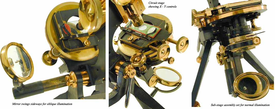 for accessories. Beneath the stage there is a plano-concave mirror