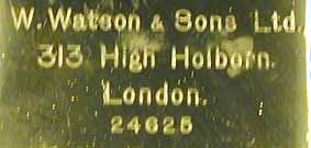 of the body tube with the makers name, address, W.WATSON & SONS